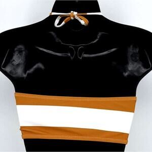 Swimsuit Dark Yellow & White Stripe Print Halter Bikini Top Only Size X-Large