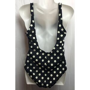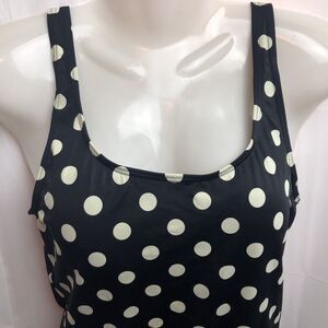 * Swimsuit One Piece Women Large Black Ivory Polka Dot Pattern Padded Tank Classic