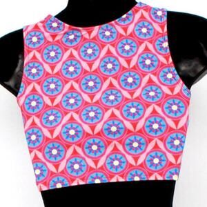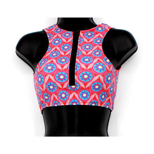 Swimsuit Pink & Blue Geo Print Zipper Tankini Top Only Size Small