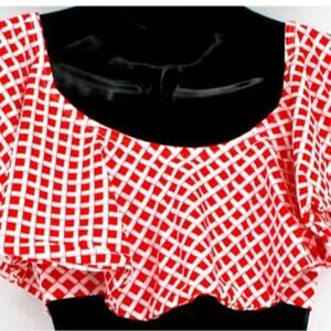 Swimsuit Red & White Print Ruffle Bandeau Top Only Size Large