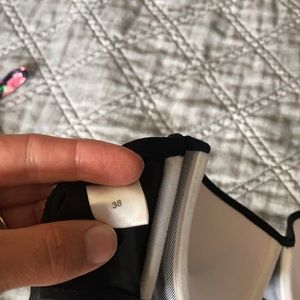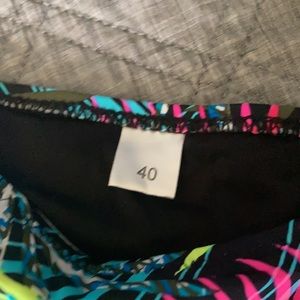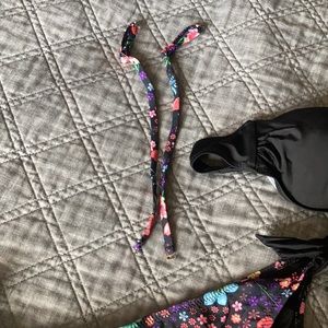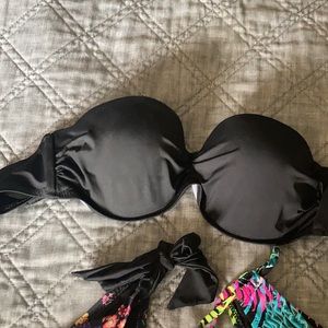 Black strapless top. Comes with optional straps that match the bottom on the left.