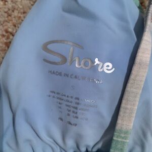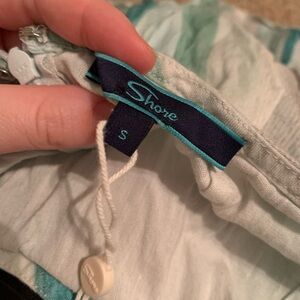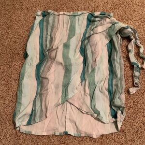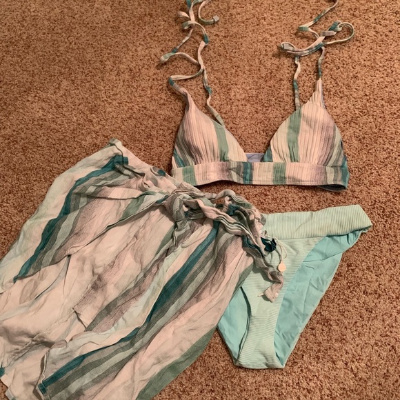 Elevate your swimwear collection with this stylish teal and white striped swim bra. Designed for comfort and confidence at the beach with a skirt cover up to match.