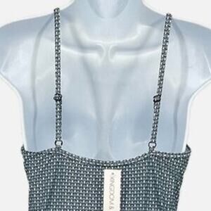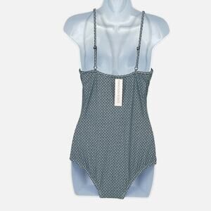 Sinch Neck One Piece Swimsuit Loop Print in Blue, White and Green Size Medium