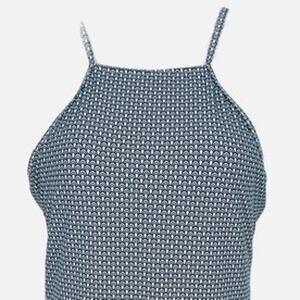 Swimsuit Sinch Neck One Piece in Blue, White and Green Loop Print Size Medium