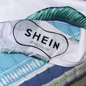White and green floral swimsuit, bikini and bottoms, made by SHEIN. Never worn.