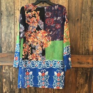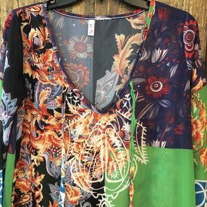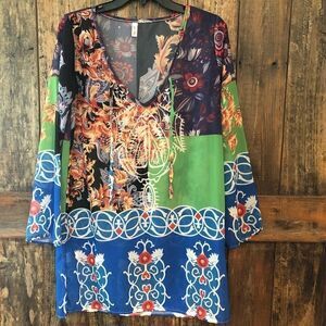 Swimsuit Beach Cover-Up Sz M Sheer Green Relaxed Fit Large Floral Swim Cover-Up