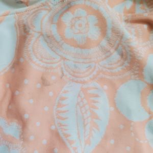 2 swimsuits. Orange one has some light blue spots on it.