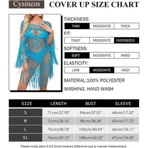 *MATERIAL: Bikini cover up is made Acrylic100%. Soft and breathable lightweight fabric, easy to put on or take off. These cover ups perfect for Womens Bikini, Swimsuits, Monokini, Swimwear, Beachwear, Bathing Suits, Tankini, Casual, Ect.