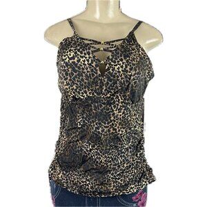 ITEM: Swimsuits For All 14 Animal Print Caged V- Neckline Ruched Sides Swim Tankini
