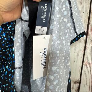 Swimsuits For All Asymmetrical Black and Blue Sleeveless Blouse SwimSuit Top NWT