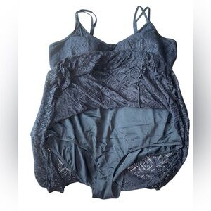 Swimsuits For All Black Crochet Lace Swim Dress Size 24