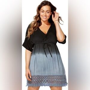 Swimsuits For All | Black Gray Ombre Renee Cover Up Dress, Size 14/16