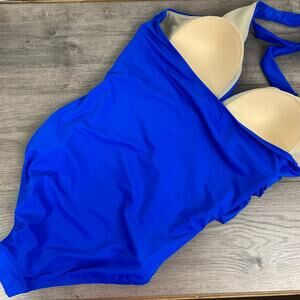Swimsuits For All Blue Ruched Neck Tie One Piece Swimsuit Sz.14 NWT