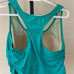 Vibrant tankini by Swimsuits For All. Features a cropped racerback design. Perfect for summer fun.