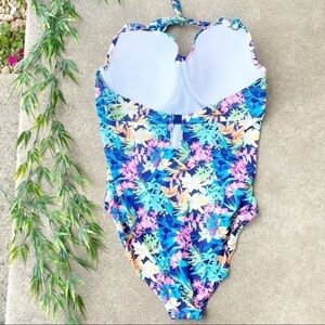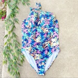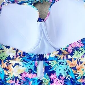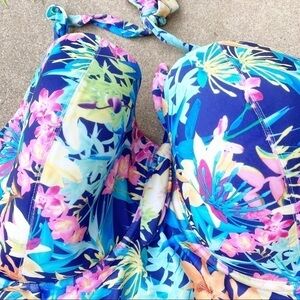 Features: adjustable tie halter. Back class closure. Underwire cups