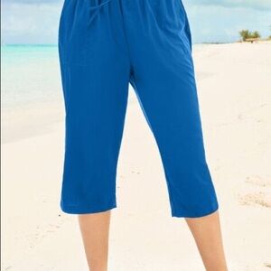 On-the-go crops Great pants for kayaking or just hanging around. Good, comfortable fit and water shedding, fast drying material. Perfect for summer days that call for extra coverage. Quick-drying fabric. Elastic waist with adjustable drawstring. Side-seam pockets. Color is Dark Pink With Red Undertones