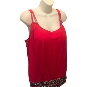 Swimsuits For All Pink Tankini Swim Top Sz 16 Relaxed Fit Colorful Hem Shelf Bra