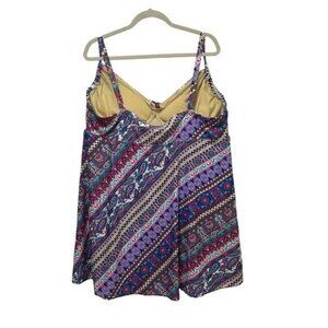 Swimsuits For All Plus Size 24 D / DD Swim Dress Paisley Purple Underwire Stripe