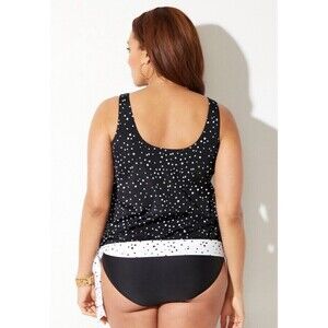 Swimsuits For All Plus Size 34 Black/White Dot Side Tie Blouson Tankini Top