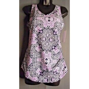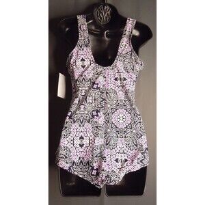 Item: Swimsuits For All Sarong 1-Piece Swimsuit 12 Purple Black White Floral Print