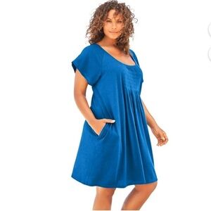 Swimsuits For All Swim 365 Women's Plus Size 2X Box-Pleat Cover Up Blue NWT