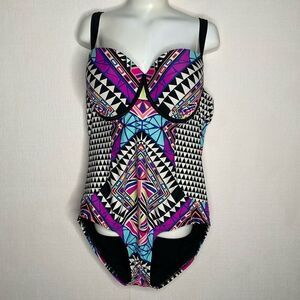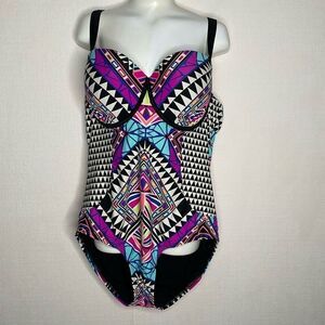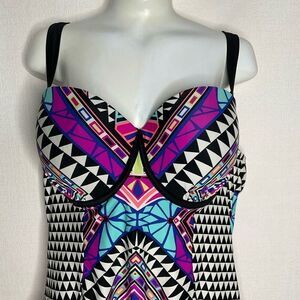 Swimsuits For All Swimsuit One Piece 14 Tribal Print Bright Wide Strap Plus Bra