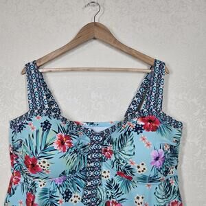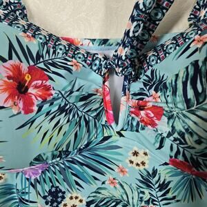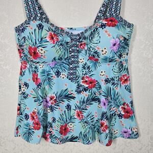 Swimsuits For All Tankini Swim Top sz 26 Aqua Blue Multi Floral Keyhole Neck