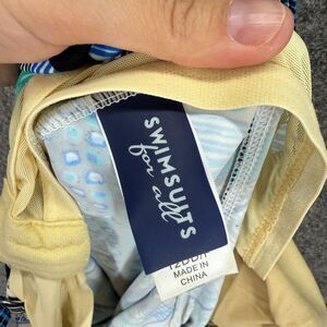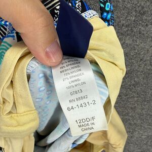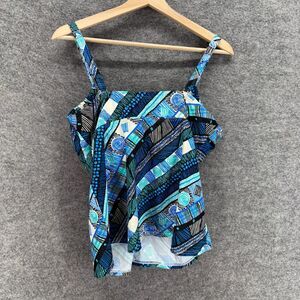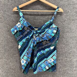 Swimsuits For All Tankini Top Women 12DD/F Blue Striped V-Neck Lined Push Up