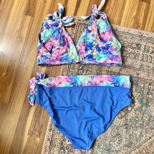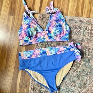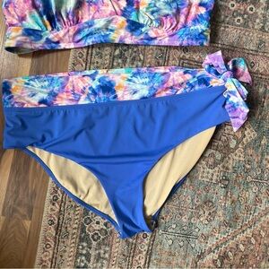 Swimsuits For All Tie Dye Shoulder Bikini Set Shirred High Waist Brief 22 / 24