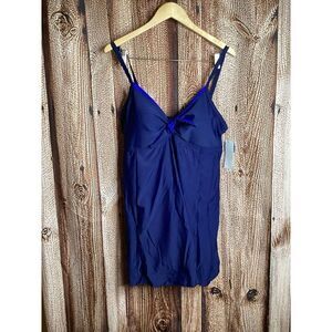 Swimsuits For All Tie Front Navy Blue Swim Dress 16 Bathing Suit One Piece NWT