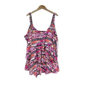 Swimsuits For All Twisted Ruffle Tankini Top Womens Plus Size Animal Print 34