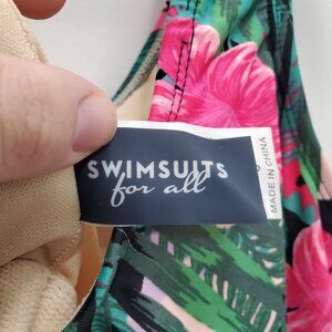 Swimsuits For All Women's Green Pink Tropical Skirted One Piece Bathing Suit 8