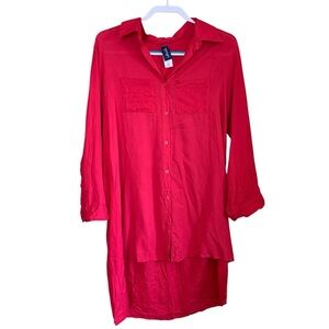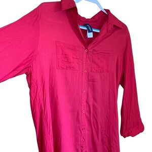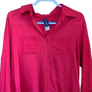 Swimsuits For All Women's Red Lyla Button Up Cover Up Shirt 10-12