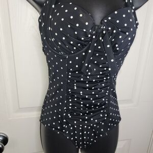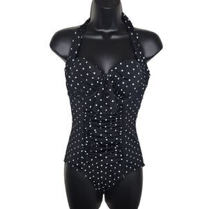 Swimsuits For All polka dot black halter one piece swimsuit size 8