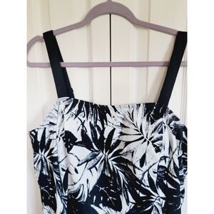 Swimsuits for All 22 Swim Dress Swimsuit Black White Tropical Print 2X NWT