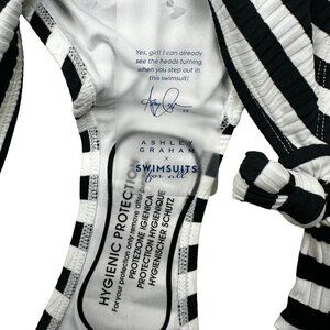Black and white striped Side Tie Bikini Bottoms from Meet Curve in women's size 16. These cheeky, fully lined bottoms offer a flattering, secure fit.