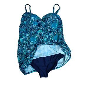 Swimsuits for All Blue Animal Leopard Print Swim Dress Sweetheart Neck Womens 20