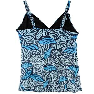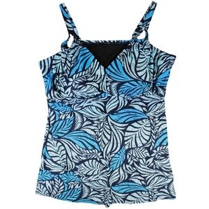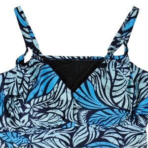 Swimsuits for All Blue Leaves Printed V-Neck Swim Dress Vacation Resort Beach 22