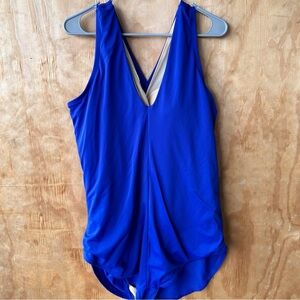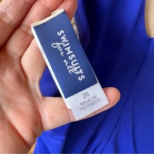 Swimsuits for All Blue V-Neck Ruched Skirted Swimsuit Blue