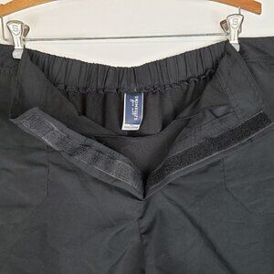 Relaxed short with panty underlayer. Front hip pockets. Elastic at back of waist. Front hook and loop closure at fly.