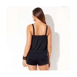 Go with the flow in our light and breezy blouson tankini top. This easy-to-wear style has a relaxed fit and is Designed with a built-in shelf bra for comfortable support at the beach, the pool and everywhere the sun takes you. Pair this blouson beauty with any of our fit-to-flatter swim bottoms to create the suit of your dreams. Scoopneck. Encircled shelf bra with plush elastic underband and sewn-in, soft cups Adjustable straps. Unlined blouson top. Solutions: Upf 50 Sun Protection 85% Nylon / 15% Spandex. Fabric provides Upf 50 Uv protection. .Soft lightweight draped fabric. Hand wash with mild soap. Roll suit in towel and squeeze out excess water. Dry flat avoid washers and dryers.Imported Relaxed fit.