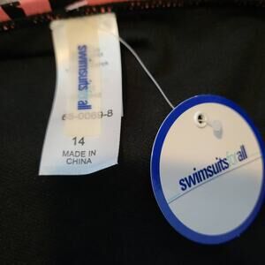 Swimsuits for All size 14 Black, Red, Pink Leaf Print Swim Bottom NEW
