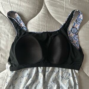 Swimsuits for All size 22 blouson style tankini top blue/pink geometric print