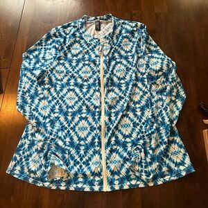 Swimsuits for All swim shirt rashguard women’s plus size 22 Blue White tie dye