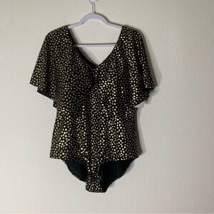 Swimsuits for all Womens gold foil black flutter sleeve one piece swimsuit 24