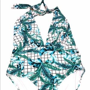 Swimsuits for all size 22 banana palm leaves one piece gorgeous swimsuit