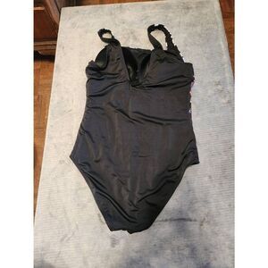 Swimsuits For All Black & Purple & Pink Floral One Piece Swimsuit Size 12