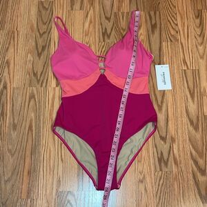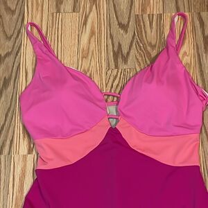 Swimsuits For All Tummy control Pink color block Swimsuit, Slimming, 10