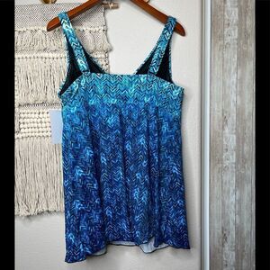Swimsuits for All Blue Herringbone Tank Top Swim Dress size 16. Brand new with tags, no flaws. Adjustable straps.