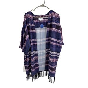 Swimsuitsforall Multicolor Patterned Fringe Hem Open Front Kimono Cardigan Size 18/20